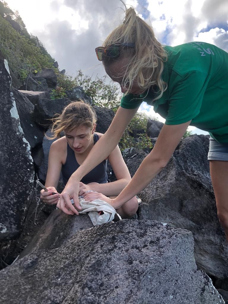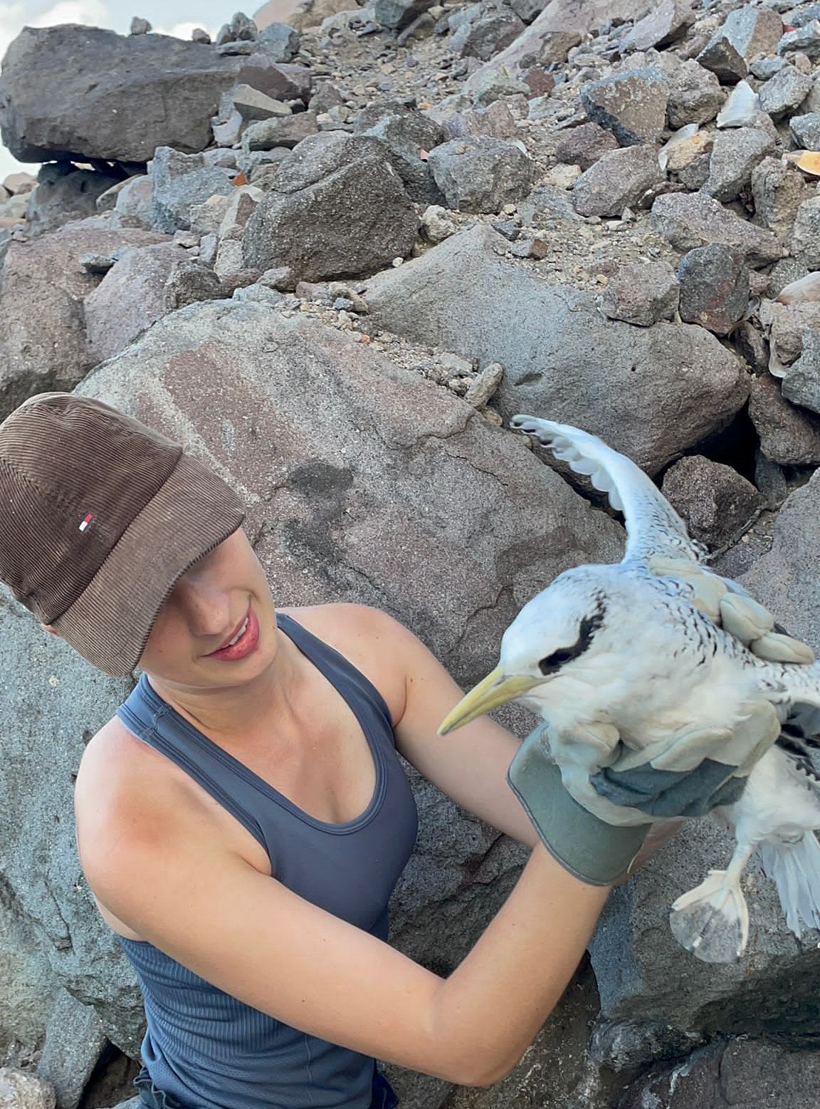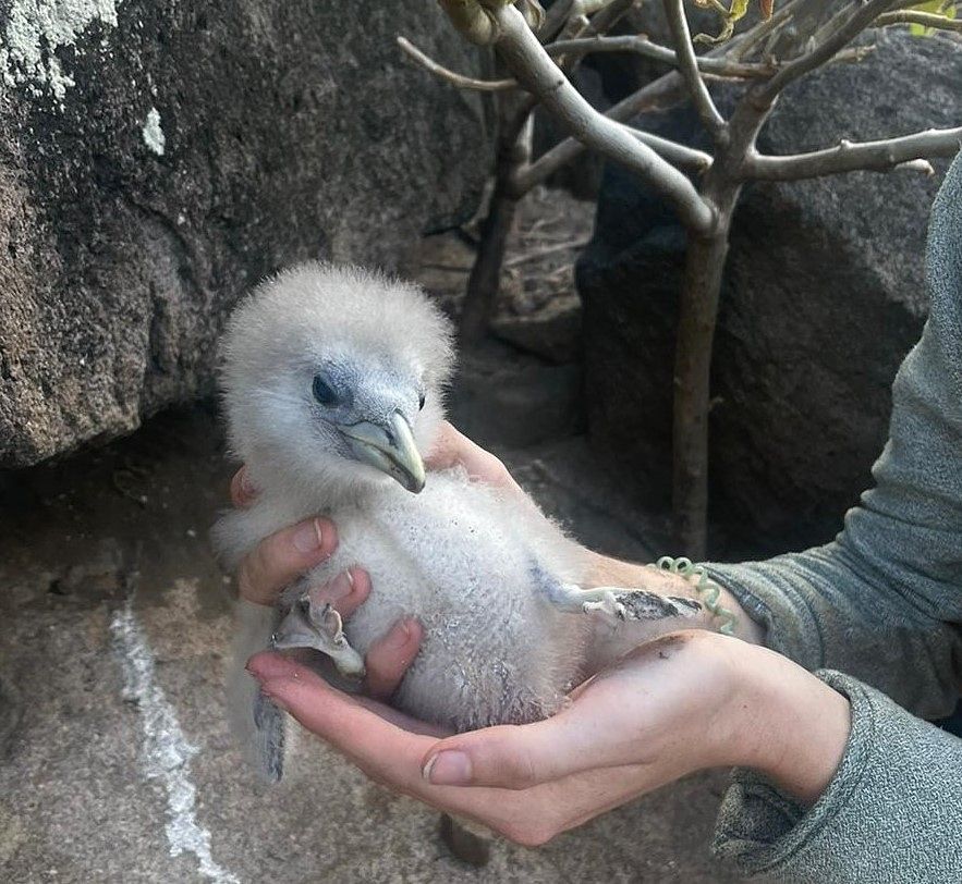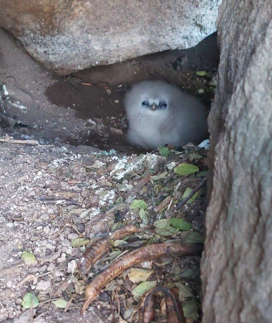 Every week, the Red-billed Tropicbirds breeding on Pilot Hill, Sint Eustatius, are surveyed. Adults are carefully extracted from the nest and their unique identification band is recorded. Additionally, the presence of any egg or chick is recorded. After a chick hatches, they are checked and weighed each week. When they are grown enough, they also receive their own unique identification band. Red-billed Tropicbirds raise one chick per year and invest a huge amount of time and energy to raising the chicks.